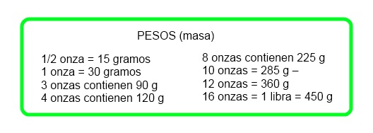 Los ingredientes sólidos varían en relación de peso y medida. Una libra de mantequilla, es igual a dos tazas, pero una libra de harina mide aproximadamente cuatro tazas.